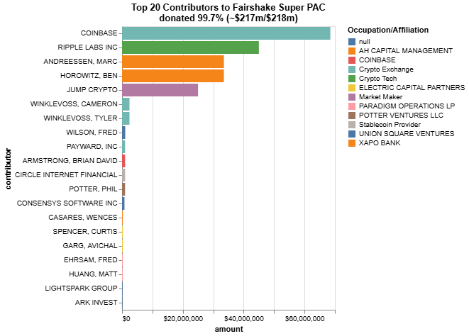 We note that the largest single contribution came from FORIS DAX INC the parent company of the Crypto.com exchange. Fairshake, a crypto-focused PAC, raised several hundred million dollars during President Trump’s previous election cycle. The largest joint contribution, if taken together, came from OpenAI CEO President and Co-Founder Greg Brockman and his wife Anna Brockman. In the healthcare space, Nosheen Hashemi of January AI donated $ 1m as did Benjamin Landa of Sentosa Care.
