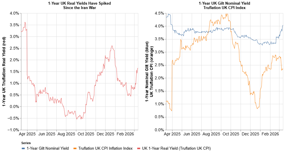 Official US CPI data suggests that the US inflation rate is around 2.7% per year. Truflation data suggests otherwise and using US treasuries to calculate real yields for relatively short tenors (1-3 years) shows that real yields have increased to their highest levels since April 2025.