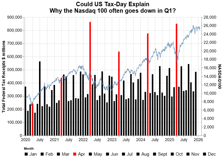 Given that some of the realised gains from 2025 might have been redeployed already (which means they would need to be sold again, if some of the proceeds had already been earmarked for tax payments), we also wonder whether this could lead to some downward pressure on equity markets going into April.