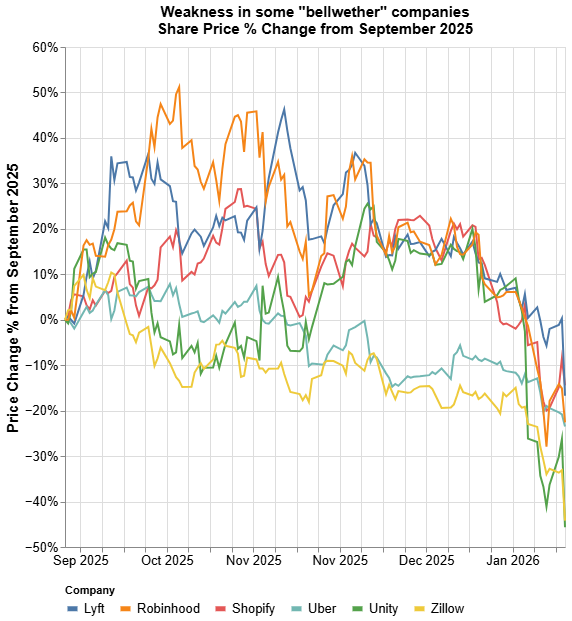 We see two paths forward. The first assumes we are at, or close to, a bottom in large cap equities, indices and other assets like cryptocurrency. Perhaps selling is exhausted and the reversion to previous trajectories and apparent “discount” to peak 2025 levels is too alluring, especially for crypto. We believe this requires a significant positive catalyst. We don’t see this coming from the driver of the previous equity market top (AI and AI infrastructure). Nvidia earnings are too far away - maybe Alphabet turns higher overnight and maybe Amazon blows the roof off tomorrow evening. More likely, we think, is a significantly positive legislative victory for crypto. This would have to come soon, however, as further delay might push the passing of legislation into the next congress.